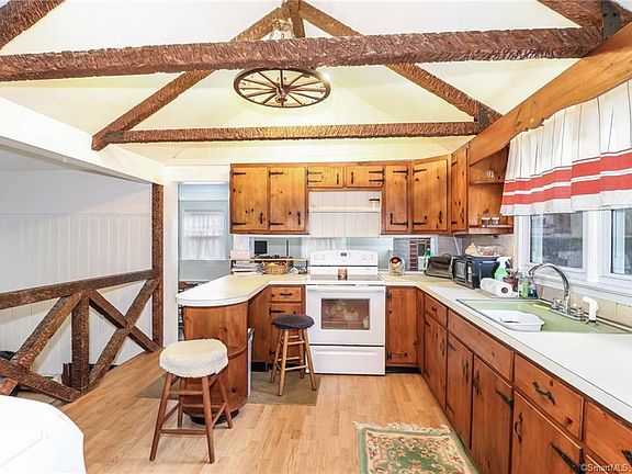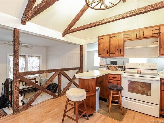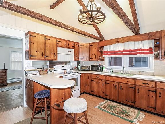 Pretty and private property but close to shopping and commuting Spacious Ranch home with beautiful level yard and plantings. Expansive and flexible floor plan offers many options. Great Room area with Loft and wet bar set up, extra space off of Eat-in Kitchen for storage, Sun Room area off of Family Room. Refrigerator and Range on left side of house to be removed. Some newer thermopane windows. Field Card shows 4 bedrooms - septic is measured 750 gallons. One-car Garage and Outbuildings on the property make for great storage or work areas. Country setting on gravel dead-end road - plenty of parking space on the flat driveway. 3 acres includes 1 acre once separated but to be re-combined.