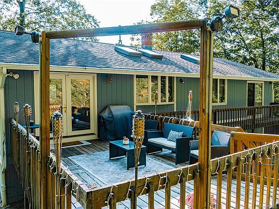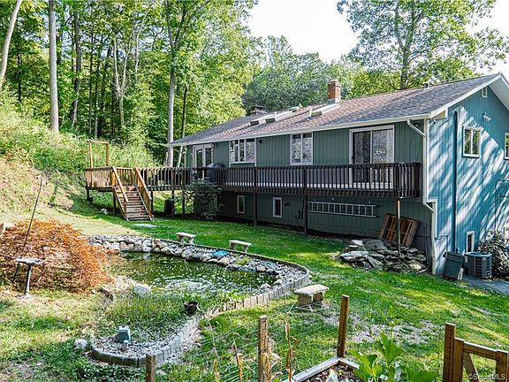 This well-maintained raised ranch, with 3 large bedrooms and 2 full baths, is tucked away at the end of the cul-de-sac on an expansive 1.61 acres. The home features newly refinished hardwood floors throughout the spacious living room and opening into the dining room. A warm open feeling is accomplished with the cathedral ceilings in the living and dining rooms. Home is equipped with central air throughout and the upstairs features a new pellet stove that can be used as an alternate source of heat in those cold winter months. The lower level is fully finished with it's own full bath and fireplace. Other stunning features are the large wood deck leading to a large fenced yard containing a koi pond. Make your appointment to see all this beautiful home has to offer!