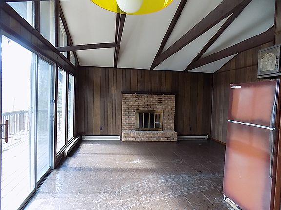 Glass Front Contemporary home with wrap around deck with exposed beams, vaulted ceilings with 3 Bedrooms, 1.5 Bathrooms and a 1 car garage with full unfinished basement