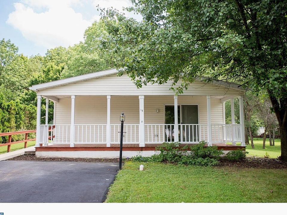 55 and over living at its best here in sought after Quiet Acres 55 & Over community! One of the Best 55 & Over Communities around! Enjoy the spaciousness of a wide open floor plan. Or relax sitting on your peaceful front porch which expands across the entire front of this One Floor Home! Or, if you prefer a little more privacy, the back patio looks into the wooded area behind, where you can see deer, wild turkeys and many beautiful birds. Enjoy your morning coffee or an evening refreshment in this truly Quiet community. There is a concrete ramp going into the side door for those who might need it! This home boasts a Very Wide Open floor plan. There are also 3 generous sized Bedrooms with all 3 having Walk-In Closets! The Full Kitchen is spacious with plenty of sparkling white cabinets and a lots of countertops. Enjoy gatherings with a full and open Dining Room. There are 2 full baths with the Master Bath having a walk-in shower. Just off of the kitchen is the Laundry Room with the door to the rear patio. Brand new total Window replacements! And there's a convenient tool shed. This is retirement living at its best, or if you're thinking of downsizing, this is the way and the place to do so. There is a Clubhouse with a Pool Table, Dart Board, large Kitchen for larger gatherings, Exercise Room and many frequent activities in the main room which seats approx. 45-50 guests and keeps the Community engaged. This home is close to Rtes. 309, 113, 152 and 563. There's plenty of shopping within 2 miles. (Giant, Landis's, Home Depot, Staples, Pet Store and others.) The Washington House and Sellersville Theater are approx. 1 mile away for Dinner and a Show! If you're looking for Affordable, Move-In Ready, Peaceful Retirement or Downsizing, this is the way to do it. BACK ON MARKET, DUE TO ILLNESS OF BUYER. (ALL Deposit Checks to be made out to FOX & ROACH LP)