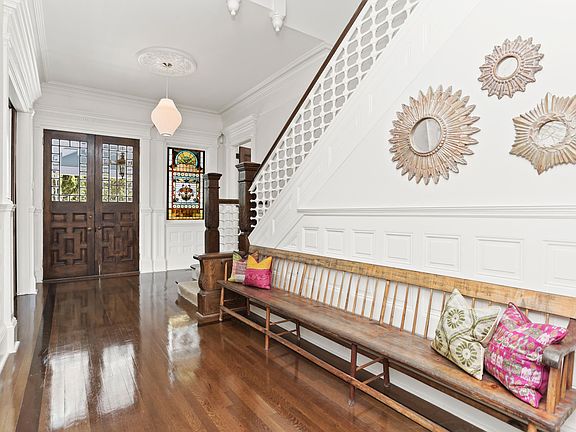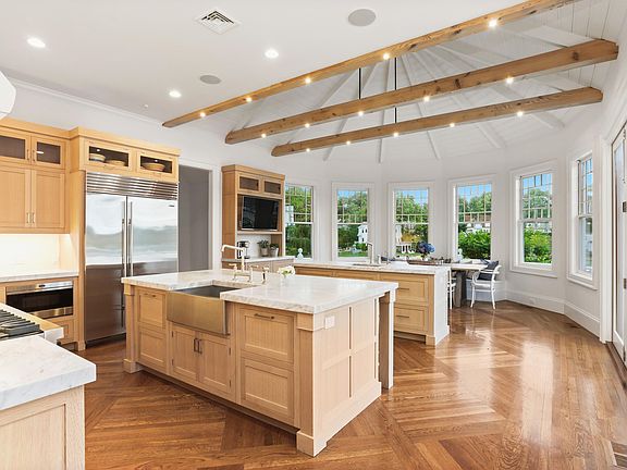 Spectacular original Willowmere Estate. 230 feet of panoramic waterfront with dock, pool and outdoor kitchen on 1.69 acres, in the Willowmere Association. Renovated to create the perfect blend of modern amenities while preserving the authentic details that give this home its renowned character. Amazing features include wrap around porch with covered pergola overlooking the pool and waterfront, new dock and sea wall, high ceilings, gleaming wood floors, original millwork, oversized windows, new state-of-the-art kitchen with multiple islands and dining area, new high end baths and gym. Studio/office/au pair suite above 3 car garage in carriage house. Sighted regally behind stone pillars and set back from the road, high above the water to be protected while providing great views.