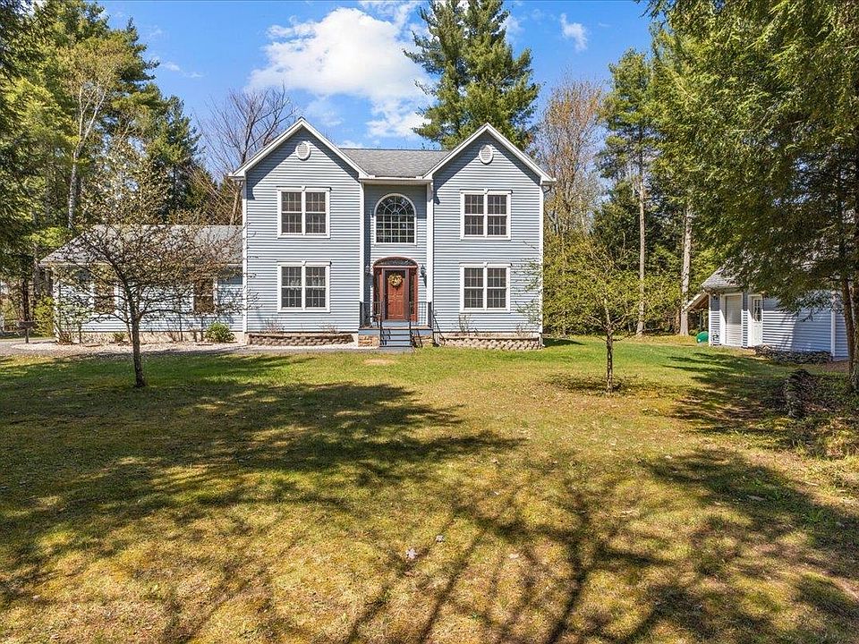 You can have it all with this gorgeous Colonial tucked away on a private 2.02 acre lot. Hardwood floors and crown molding throughout the home greet you as you step inside to the foyer, adorned with a vaulted entryway and illuminated with a beautiful chandelier. The first floor is just the beginning, with french doors greeting you to the private dining area, a fireplace inviting you to the living room to cozy up with a good book, or the masterful kitchen, complete with granite countertops and a large pantry to supplement the chef in the family. Enjoy those warm months on the 3 seasons screened in porch, overlooking the vast wilderness and common land behind the property. The three bedrooms upstairs provide plenty of space to spread out, and a generous amount of closet space as well! Need storage space or craving a home gym? That's here too. The basement has plenty of space to let your imagination run free. Perhaps an in-home theatre, or even a basement bar? Consider yourself more of an outdoors person? Both outbuildings come wired with electricity and 220 Watt plugs to let your creativity run free. The smaller building features a wood stove and would be a great place to hone some woodworking skills or store gardening supplies. The larger shed comes equipped with two garage doors, one which is oversized to fit the fun stuff. Lose yourself on the trails behind the property spanning 65 acres, or maintain the current garden and add your own delicacies. Showings begin 5/11/2024.