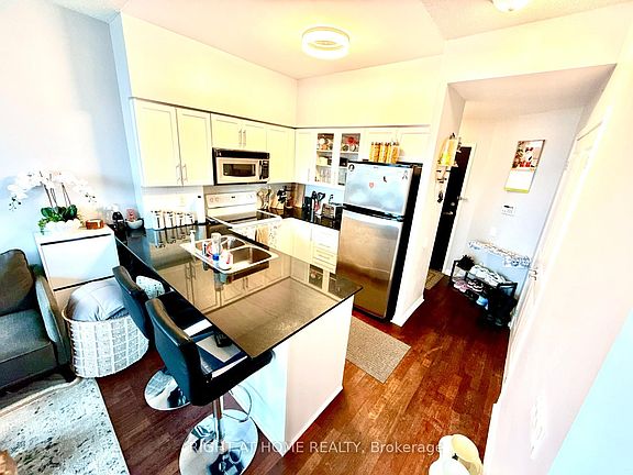 Welcome To Windermere-By-The-Lake. It is a luxury 1 bedroom, 1 bathroom unit featuring a kitchen with granite counters, a breakfast bar, and stainless steel appliances. The luxury bathroom includes a soaker tub. The unit offers a great floor plan with floor-to-ceiling windows and 9-foot ceilings. The location is excellent, being within walking distance to the Lake, with streetcar access right at the doorstep, and close proximity to the highway. Residents can also enjoy great amenities, including a gym, pool, virtual golf, sauna, 24-hour concierge, and much more.