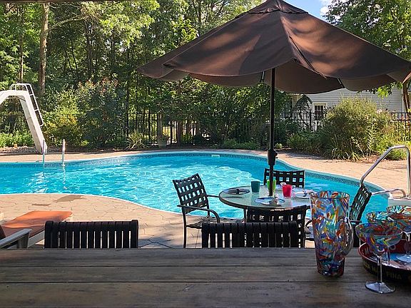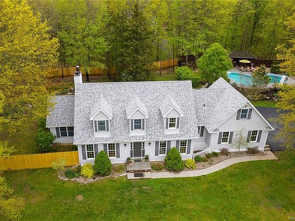 Welcome to Trails End Retreat located in the town of Shawangunk! Quiet country roads will lead you to this beautiful retreat located on the outskirts of the hamlet of Pine Bush! This expansive cape-cod home is nestled on just over 2 private acres and is ideal for a weekend home or permanent residence. Upon entering the front door you are greeted by gleaming maple flooring, natural lighting and spacious rooms. The kitchen has been completely renovated and will inspire anyone who loves to cook! The banquette in the breakfast nook overlooks the backyard, seats 6 comfortably and is a great place to sip coffee. Working from home? The den offers built-in shelving and is your home office hideaway. When it's too cool for outdoor dining, your dinner parties can move indoors to the formal dining and living rooms as well as the family room with its beautiful stone hearth. The second floor offers a primary suite with private bath and 2 additional bedrooms sharing a Jack and Jill bath. The finished lower level has an additional bedroom, full bathroom, and media room. Storage space has not been forgotten with the large walk-in cedar closet and storage shelving in the utility room. For those who like to build and tinker, there is a large workshop with separate access to the back yard. A separate entrance from the laundry room leads to the one bedroom suite with its own bath and views of the gardens and pool . perfect for extended family and guests! The grounds of this beautiful home are just as stunning as the interior! The numerous, mature, perennial gardens offer color all season long and easily provide a fresh bouquet of flowers every week. Enjoy entertaining friends and family during the warmer months with the heated in-ground, salt-water pool. There is room for everyone with the extensive yard with various patios and sitting areas, cabana with changing area and bar. The large fenced-in backyard maintains privacy and keeps the children, dogs, and chickens within view. The separate garden area features raised beds, fruit trees, and a potting/storage shed. This one-of-a-kind home is located in the Pine Bush school district and is minutes to Mohonk Mountain House, Minnewaska State Park, New Paltz, hiking trails, various wineries, and farm-to-table restaurants!