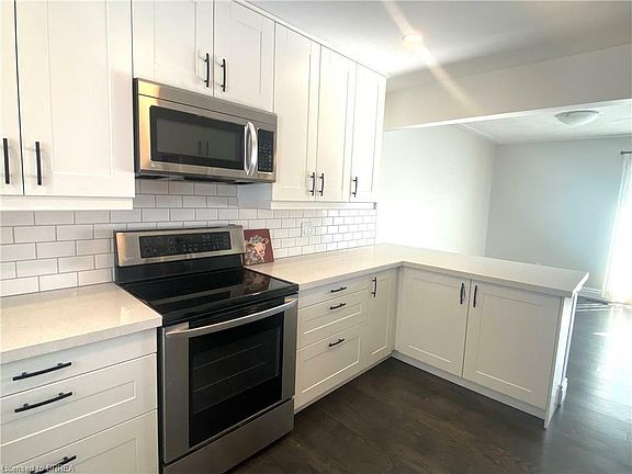 Very nice bungalow with walk out basement area. Part of the area has been modified and features a one bedroom in law suite with kitchenette and bright living room as well as a large 3pc bath. All new flooring and ceramic tile in bath.. Upper level features an updated open concept kitchen with pot lights, appliances remain, quartz counters. very nice! Bright big living room with sliding door to deck overlooking large rear yard. Thre bedrooms. Modern 4pc bath. Down the street is a large park with a tobagganing hill, and acees to both public and separate grade schools. Walk to plazas nearby. On a bus route. Desirable north end location. Large driveway.
