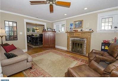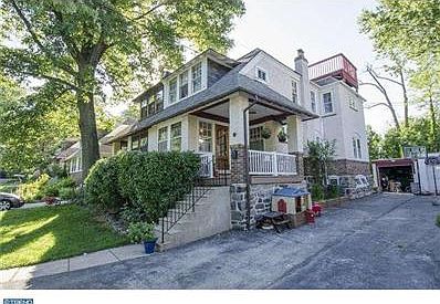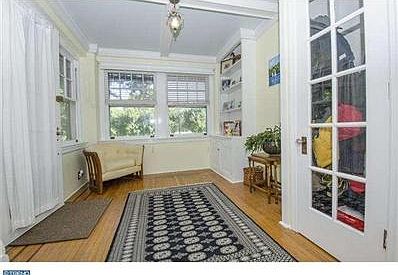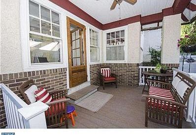 Adorable and spacious updated twin home located across from the famous Narberth Park offers a walk to lifestyle for it's buyer! You can't beat the proximity to the train stores library movies and more. This home has 3 nicely sized bedrooms 2 full baths. Both are modern and updated. This home has newer central air hardwood floors single driveway and a detached garage. And to literally top it off it has a fabulous roof top deck perfect for summer parties and watching the fireworks. Cozy up to the fireplace on cold winter nights sit outside on the covered porch and watch the ball games across the street. A spacious living room is seen from the front sun room that has a coat closet bookcases and coffered ceiling. The living room and the rest of the house has beautiful hardwood floors and they extend into the sunny dining room. The kitchen is galley style and up to date and has an extra space off of it used now as a pantry. Access to the deck and backyard from here. The 3 bedrooms on the 2nd floor all have hardwood floors. The master is big with a 2 full sized closets. Steps from there lead to the amazing rooftop deck and there is a skylight bringing lots of light to the 2nd floor. The basement has new carpeting a newer full bath bookcases playing area laundry and a storage room and a door to the yard. Narberth has it all and so does this home!
