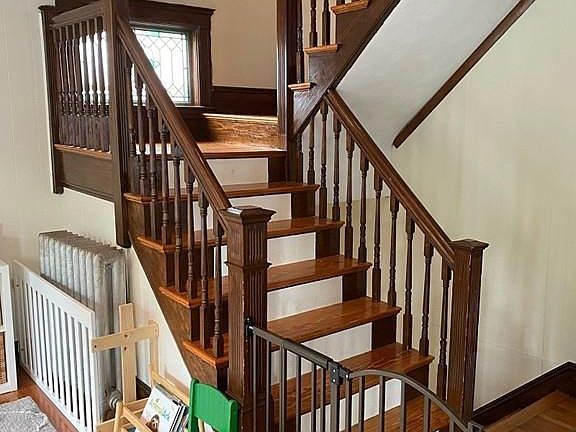 Available 8/1 or sooner! This apartment on the upper two floors of a 2 family home in sought after East Arlington is a spacious 2100+ square feet with 8 rooms, hardwood floors and updated windows. 2nd floor has formal living room and a formal dining room with built in hutch. Eat in kitchen has granite counters and tile back splash, is applianced with electric stove, dishwasher and refrigerator and has a charming breakfast nook. There is a bonus/family room on this floor with window seat and glass door leading to the exterior front porch. Off the kitchen is a three season porch. 3rd floor has 4 bedrooms and 1 updated bath. Gas heat. Shared W/D (or hkups available) and storage in the basement; landlord does not repair/replace W/D. Off street parking available for up to 3 cars; one garage space available. Quick access to Alewife Station, Spy Pond, Capitol Theater, Minuteman Bike Path. No pets, nonsmokers only. Year lease. First, security, fee. Renter's insurance required. 4BD-XYZ