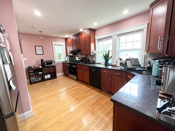Spacious Lead-Paint Certified 4 bedroom 2 full bath Cushing Square upper unit condo with in-unit laundry, off street parking and extra storage in basement, available September 1st. Main floor has a fireplaced living room, enclosed front and back porches, formal dining room, eat-in kitchen with granite countertop, full bath and 2 bedrooms. Upper floor has a master bedroom suite including a full bath w/ skylight, jetted soaking tub & tiled stall shower, and laundry. Additional room on the upper floor that could be a 4th bedroom or office. Lovely patio in rear yard. 1 Garage parking and 1 driveway parking included. Walk to Belmont top-rated public schools, shops, restaurants & 73 bus to Harvard subway station. first month rent is due at time of signing lease, security deposit and last month rent will be required to be saved in interest bearing escrow account