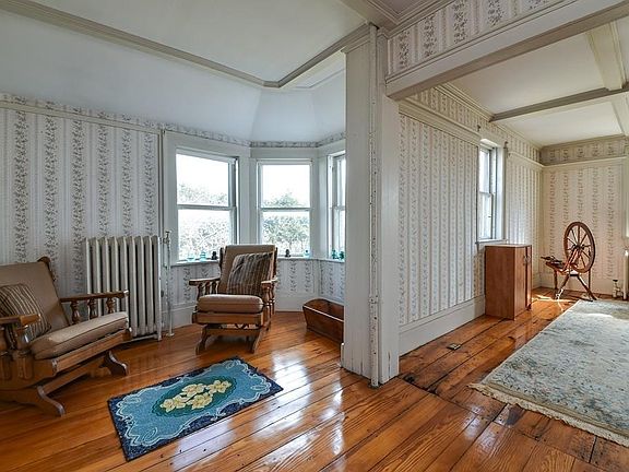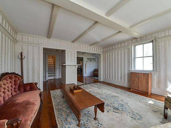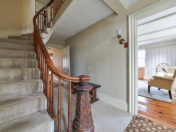 Set prominently on a knoll overlooking East Holliston, this stately 19th century antique home offers a spacious floor plan and flexible room layout. From the foyer, an elegant carved mahogany bannister winds 3 floors along a gently curving staircase. The first floor includes formal and informal spaces with living room, dining room, den, family room, kitchen, first floor bedroom with an adjacent full bath/laundry, and three-season enclosed porch. There are 3 generously sized bedrooms on the second floor (one of which is accessed by a second rear staircase) a sitting room, and another full bath. On the 3rd floor there is a sunny 15x24 great room with windows on 3 sides. A 40X70 barn with separate electric service provides parking, plenty of storage, and functional utility for the home hobbyist or car enthusiast. Conveniently located within easy walking distance of village shops and restaurants and miles of walking trails on town owned conservation land, this is quintessential Holliston.