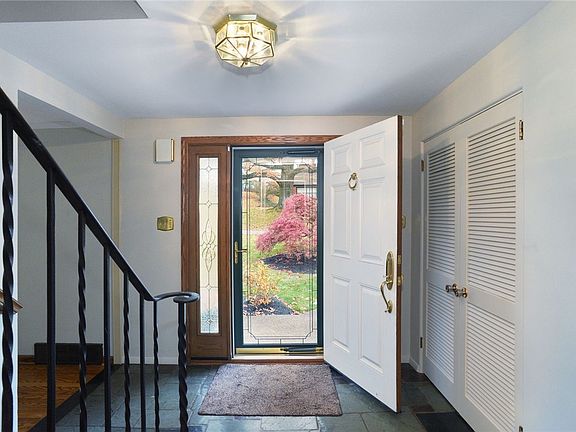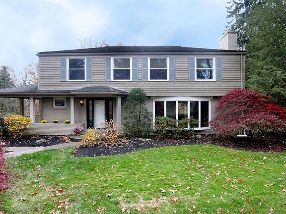 Welcome to this spacious colonial nestled in Rosslyn Farms! With 4 bedrooms and 3.5 baths, this meticulously maintained home offers elegance and comfort throughout. As you step inside, the gleaming hardwood floors flow through the open living and dining areas creating an inviting atmosphere. The gourmet kitchen is a chef's dream, featuring abundant cabinetry, heated floors, a wine bar with a beverage cooler, a breakfast nook, and stainless steel appliances, including double ovens. Upstairs, three generously sized guest bedrooms provide ample closet space and share an updated full bath. The primary suite is a sanctuary, boasting double custom closets plus a walk-in closet, window seats, and its own private full bath. The lower level adds extra living space with a cozy fireplace in the game room and access to the 2-car garage. Enjoy the outdoor living space on the covered porch or the back deck overlooking the tree lined backyard. Minutes to 79 and 367.