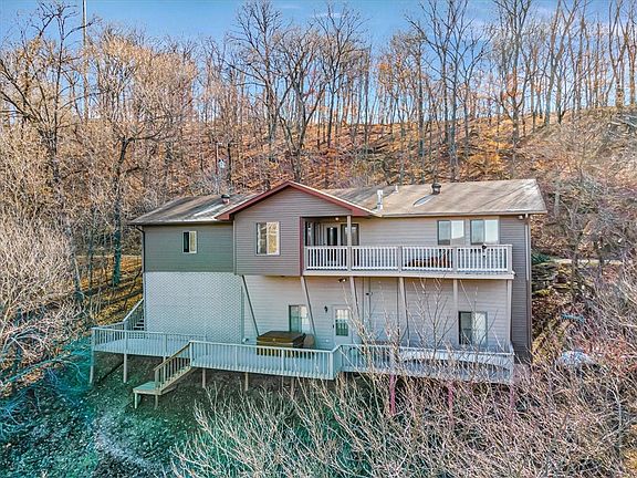 Million Dollar View-Two lots equal over 1/2 acre, private lane close to everything. Custom home sits peacefully on a cul-de-sac. Immaculate condition, move in ready, inviting upgrades, sliding windows, upgraded blinds, zoned thermostats (4), Covered porch & 2 large back decks, with swing, fresh paint bring pride of ownership.Serenity abounds. View deer, birds, and Great American Eagles soaring. Coffee with a view that rivals anything you have ever seen! Big Pantry, lots of storage, built in's, Gas fireplace in living room and pellet stove downstairs help this home's energy efficiency, along with heat-pump. Two closets in the main bedroom, solid wood doors, Workshop area complete sink (hot & cold water) very handy. Large attic storage. Craftsmanship is evident throughout this well cared for beauty. Downstairs boasts of two large bedrooms (with separate thermostats), bathroom additional storage and access to the lower deck. Separate Mechanical room with HVAC and water softener. Watch the drone video! Must See!