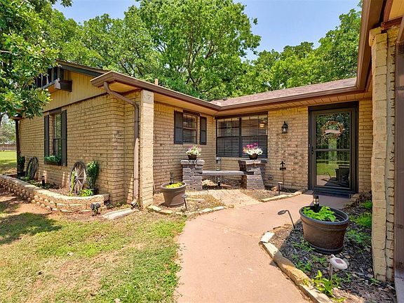 This charming 3 bedroom 2 bathroom brick home is nestled on a BEAUTIFUL park-like 5 acres at the end of a peaceful cul-de-sac located in the sought after North Rock Creek school district. Located outside of city limits yet still minutes away from Shawnee and surrounding areas and major highways, it's hard to beat this location! Nice carport for parking vehicles out of the rain! Serene views all around, beautiful pond views from the front of home you will notice right away! This home has been well maintained and many upgrades over the years! The owners love to entertain so they converted garage to provide ample space for gathering guests in the massive living room! The kitchen is nice and open with good cabinet space and room to eat and enjoy family and friends. Good size wood burning fireplace in dining area, this room could also be used as second living area since this home does have a room that was originally used as dining room so there are options to arrange as needed. Remodeled bathroom with shower/tub located near the bedrooms. Good storage throughout! Primary Bedroom has bathroom with shower attached. Convenient laundry room added also! Step outside onto the covered back patio and enjoy the serene surroundings, star gazing is a must owners say! Fire pit is ready for unwinding in the quiet surroundings! Storage building with garage door wonderful for storing riding lawn mower and lawn equipment. Canadian Valley Fiber Optic, well and septic. Make your appointment today to see this one before it gets away!
