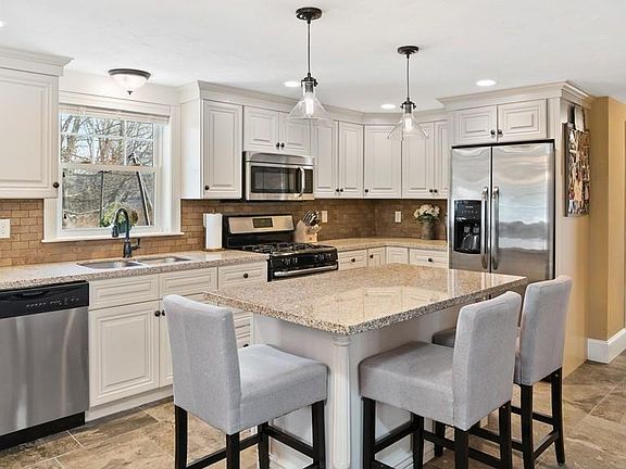 Welcome to 15 Woodland Rd. This sprawling 3 bed ranch boasts an oversized 2 car garage and completely renovated open floor plan with a newly finished lower level! Some of the many updates include: roof, siding, driveway, windows, kitchen, lighting, bathroom and flooring. Perfect for entertaining, the renovated kitchen has antique white cabinets with soft close hardware, large island with room for seating, granite countertops, travertine backsplash, stainless appliances, tile flooring and exquisite dining area with wainscoting. The living room includes a quaint fireplace and mantle with hardwood floors. Walk down to the lower level and you will find an additional 761(approx) square feet of living area with high end finishes, recessed lighting and walk-out/up exit to the beautifully landscaped exterior. This immaculately maintained home won't last! Get your offers in today and enjoy all this property has to offer! SHOWINGS BEGIN SUN APR 22 1PM - 3PM