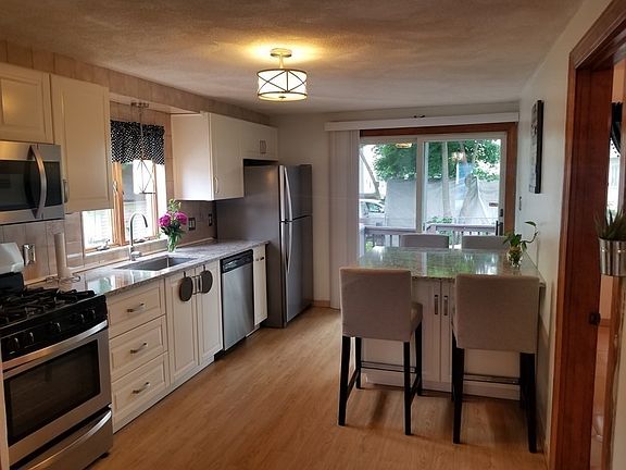 - Features: Dining Area, Countertops - Stone/Granite/Solid, French Doors, Cabinets - Upgraded, Deck - Exterior, Exterior Access, Remodeled, Slider, Stainless Steel Appliances, Gas Stove, Peninsula, Lighting - Pendant