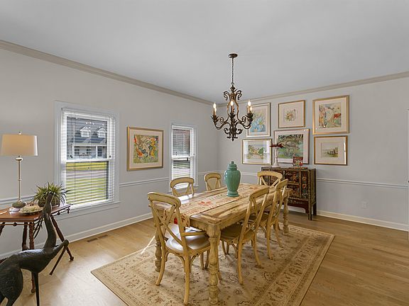 This exquisite one-level home boasts 2600 square feet showcasing impeccable quality throughout. With new red oak wood floors and elegant plantation shutters, it exudes timeless sophistication. Four spacious bedrooms offer comfort and relaxation, complemented by ample storage space throughout the house. The storage room in the garage, perfect for your organization needs as well as a side entry two car garage. The property features recent updates, with the roof replaced in 2019 and the heating and air systems in 2020, as well as a new water heater in 2022. Large living space with neutral walls, gas fireplace as well as a large dinning room for entertaining. This home is located in the coveted neighborhood of Colonies of Raleigh Place, with a tranquil courtyard off the living room and main bedroom. Come take a look.