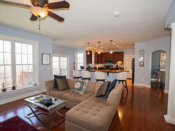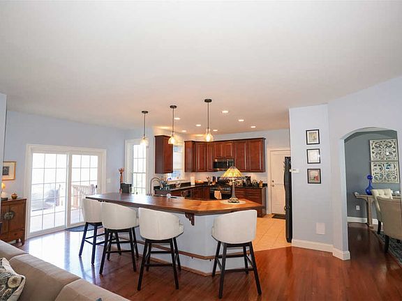 Beautiful 2+-year-old colonial home with airy open floor plan and unique architectural details, including decorative interior columns, arched entrance to the dining room which features a lighted, coffered ceiling. Expertly crafted built-in custom cabinets in the living room include recessed lighting and an electric fireplace with a heating unit. Granite kitchen with ample counter space, cherry wood cabinets, and high-end appliances bordered by a generous breakfast bar comfortably seating 5 to 6 people. Upstairs, the serene master bedroom includes an En Suite bath with a large jetted tub. Airy bonus room with vaulted ceiling is perfect as an office, media room, or play area. Relax with guests on the deck in a backyard surrounded by pine and maple trees. Full basement with egress windows and stairs leading to the garage waiting to be finished and turned into a great family or entertainment room. Additional ¾ acres of property across the road, perfect for terracing with plants and leading into your private woodlands with expansive views. Brand new Hunter Douglas shades on all the windows. Dead end street with only 2 additional beautiful homes. Private common recreation land along the Lamoille River for kayaking, canoeing, and picnicking. Must see!