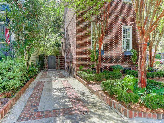 This elegant Georgian Style home was custom designed and built offering 4 or 5 bedrooms, 4 full baths on 3 levels. Built for smart 21st century living, the home is energy efficient and low maintenance, featuring a slate roof (salvaged from the Virginia Capitol Building),concrete window sills,double insulation, heart pine floors, three fireplaces, custom built-ins, over the rail curved staircase and master woodwork throughout.Ten foot ceilings on the main level, nine on the second floor. Each floor has its own HVAC system. Located in a small enclave in the Garden District behind a motorized gate, there is off street parking and private garden with private access to Tiedemann Playground. HOA covers front yards and all common areas.Exterior has Historic Charleston Foundation easement.
