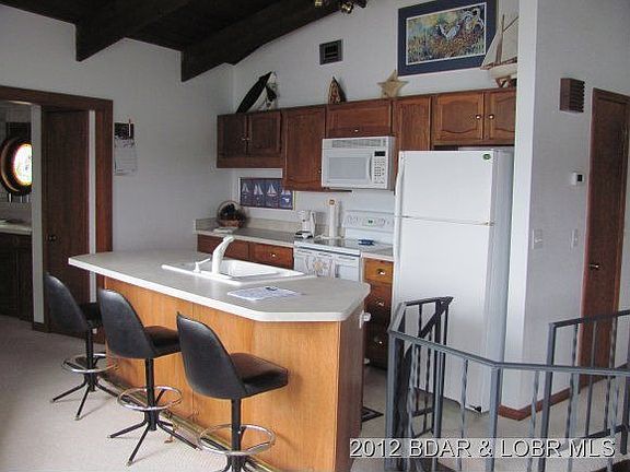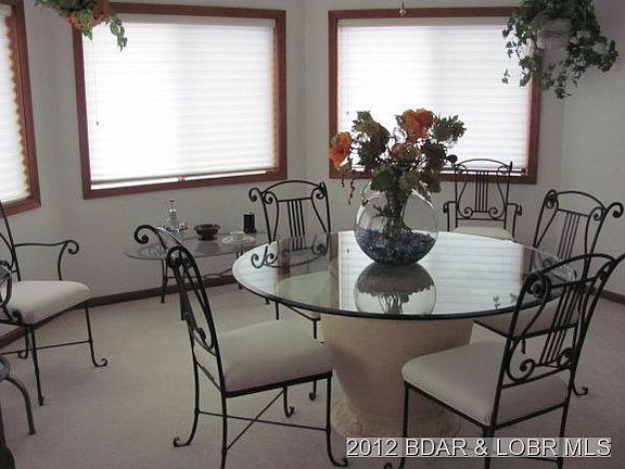 Stunning views from this gentle point lot, with octagon shaped home, and octagon dining room. Very well maintained home has plenty to offer for entertaining or just relaxing at the Lake. Outdoor waterfall and fountain compliments lovely garden area, with unique rock garden, You'll love the 2 well dock with swim area, just steps from the door. Lower level has area suitable for 3rd bedroom, but not enclosed. Brokered And Advertised By: Reece & Nichols at the Lake, LLC Listing Agent: DEB BRAYTON