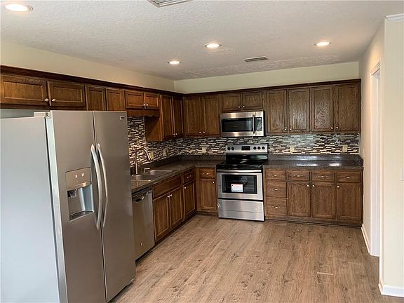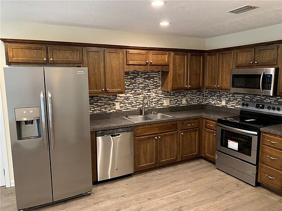 This nice 2 story home has been freshly painted inside and it sits on a spacious corner lot. Beautifully appointed eat in kitchen with stainless appliances, tiled backsplash and beautiful cabinetry! The downstairs offers gorgeous laminate flooring, guest bath and plent of room for large furniture. The master suite is conveniently located downstairs and also offers laminate flooring. The four upstairs bedrooms, stairway and landing has brand new carpet. The second bathroom is also located upstairs.