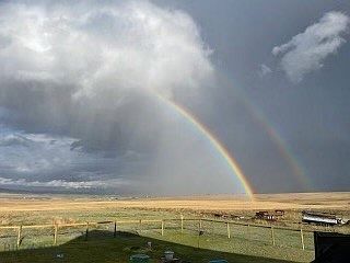 - View description: Farmland, Meadow, Mountain(s), Rural