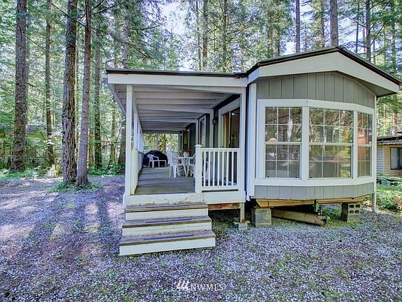 Spread out and relax on this shaded spacious lot. A large covered deck greets you, and is perfect for lounging on any time of year. Inside, the bright and airy park model you'll find vaulted ceilings, and an open living room and kitchen. Making your way towards the back you'll see a nice sized bathroom and cozy bedroom with a second entrance out to the deck. Also included on the property is a shed, perfect for additional or larger storage items. The Glen has all the amenities you could want, including 2 pools, hot tub, tennis court, library, laundry mat, 2 clubhouses, 24 hr security, gated entry, & play areas.
