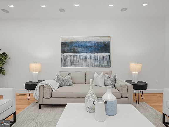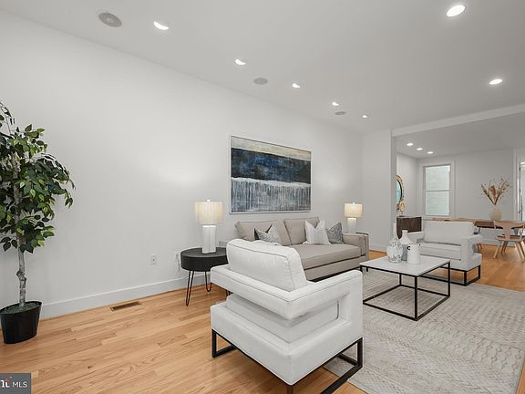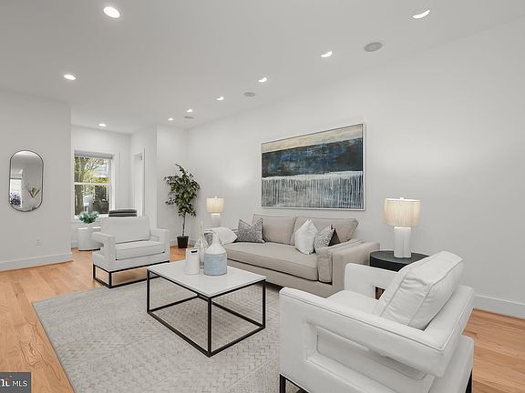 Discover elegance at 150 11th St NE, a 4-bedroom, 3 full and 2 half-bath rowhome, offering exceptional indoor-outdoor living, complete with a Carriage House and secure garage. Thoughtfully updated with contemporary finishes and warm natural elements, this residence offers exceptional space, comfort, and versatility—just steps from Lincoln Park and a short walk to both Eastern Market (Orange, Blue, Silver Line) and Union Station (Red Line) Metros. The main level boasts an airy open-concept layout with recessed lighting and rich hardwood floors that flow seamlessly from the sunlit living room to the dining area. A custom staircase with warm wood and sleek glass accents adds architectural interest and sophistication. The chef’s kitchen features glossy white cabinetry and an expansive island with waterfall edge, top-of-the-line appliances, large windows, and a French door, flooding the space with natural light. Step right out to the private rear patio and garden, framed by mature plantings and blooming wisteria, creating a serene backdrop for morning coffee or al fresco evenings. Tucked beyond the yard is a versatile Carriage House, complete with a half bath, generous storage room below, and a secure, one-car garage. Whether you need a private guest suite, home office, or creative studio, this space offers endless potential. Upstairs, the skylit primary suite boasts a generous en-suite bath with double vanity and walk-in shower. Two additional bedrooms and a full hall bath provide ample space for family or guests. The fully finished lower level includes a large recreation room, wet bar, full bath, and abundant storage—perfect as a media room or home gym. This home is perfectly situated with easy access to the Eastern Market, Navy Yard/Nationals Park, the Capitol Complex, SW Waterfront, Anacostia River Trail, and Kingman Dog Park. This close-knit neighborhood boasts an easy walk to a plethora of shops and restaurants including two major grocery stores, East City Books, and The Roost area.