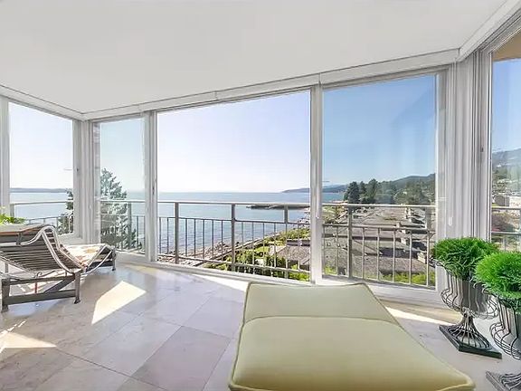 This rare-to-the-market and stunning '04'/1 bedroom and 1 bath waterfront residence offers a 270 degree unobstructed view of the ocean, seawall, and the beautiful North Shore mountains from within this immaculate, contemporary living space. Custom window coverings, California shutters, built-in cabinetry, granite countertops