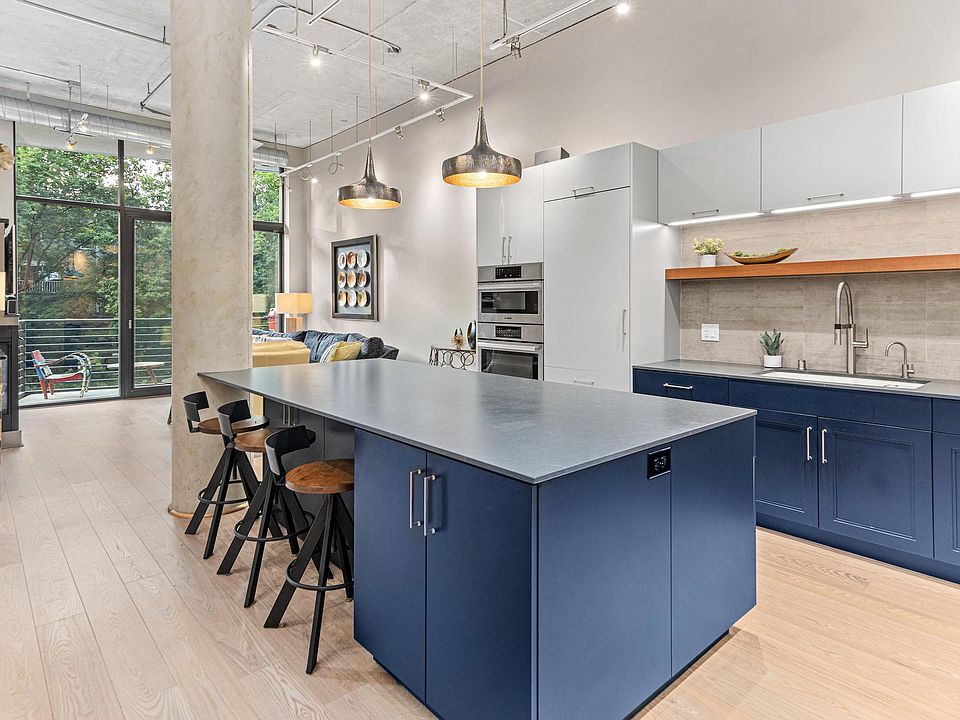 This stunning condo has over $135K of gorgeous high end updates. Indulge in a true chef's kitchen with Bosch and Thermador appliances, added gas line, black silestone counters, custom cabinets with extensive built in storage, cabinet-enclosed refrigerator, tile backsplash, a sleek covered range hood, and a massive 9 ft long center island.