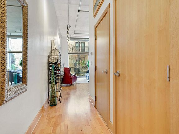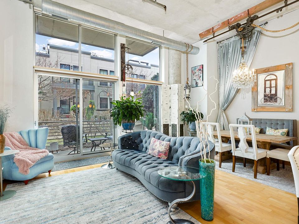 Step into the epitome of city chic with this 1 bed 1 bath condo at Village Lofts in the heart of Northeast Minneapolis. Soaring 13-foot ceilings create an airy, open ambiance that perfectly blends the unit’s industrial elements with soft modern touches and finish. Stunning floor-to-ceiling windows maximize natural light and frame views of the green space beyond your walkout patio. Functional open concept plan suits a variety of lifestyle needs and arrangements. Custom lighting casts a warm, inviting glow over the living area that features a center island, stainless steel backsplash and newer LG appliances. The bedroom boasts a walk-in closet and wall cabinets to maximize in-unit storage. Enjoy living in one of Minneapolis' most vibrant, pedestrian-friendly neighborhoods that puts you within steps of beautiful riverfront trails and views and a variety of options for dining, nightlife, arts and recreation. Don't miss this opportunity to live the urban life you envision!