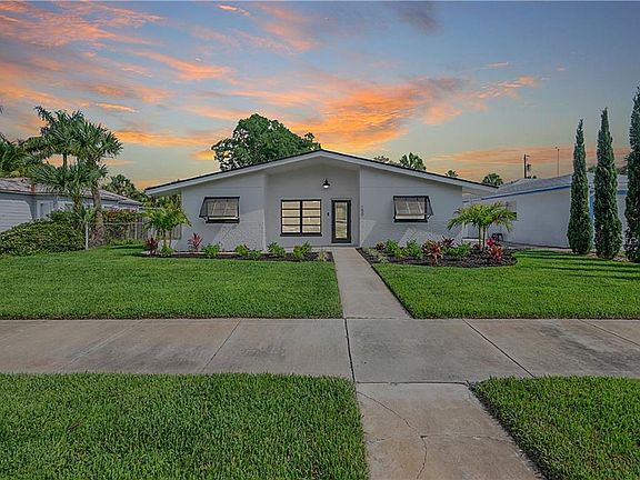 Paradise found for one fortunate buyer! Located in the coveted Belle Vista neighborhood of St. Pete Beach, this 3 bedroom/2 bathroom home has been fully updated & is ready for an owner who yearns for the salt life. Join the locals at Sandbar Bill's Bar & Grille for a sunset celebration or enjoy a pool & spa day at the world famous Don Cesar resort just down the road. Take a FIVE MINUTE WALK TO the sugar sands of ST. PETE BEACH and let the tropical Gulf breeze melt away your stress! The curb appeal of this house is STUNNING with a modern black and white paint job, new Bahama shutters, lush St. Augustine sod, and fresh landscaping out front. The backyard has also been sodded and you can access your GARAGE from the back alley...there's also plenty of room to park your boat and a giant mango tree ripe for the picking! Don't want to deal with the hassle of cleaning a boat? Join the neighborhood boat club so you can just show up with your cooler and head out for some fun on the water then let someone else deal with the maintenance. Your new beach home has even been outfitted with an outdoor shower (with hot & cold water) so you can rinse off before heading into the new laundry room/mudroom space that was designed to be the perfect place to drop your wet bathing suit and flip flops. You can just leave the sand outside where it belongs! Of course, you could also opt to come in through the new impact rated front door and you'll be greeted with an open, airy living space that has been transformed with fresh paint, water resistant vinyl flooring, custom granite windowsills, and new LED lighting, baseboards, doors, and matte black hardware throughout. The remodeled kitchen features custom white shaker cabinets (solid wood with dovetail/soft close drawers), a farmhouse sink, granite countertops, patterned tile backsplash, and Samsung appliances. The master suite checks all the boxes a modern buyer could want including a large walk-in closet, a door to the backyard, and an opulent en suite bath featuring double vanity, gorgeous tile work, and both a shower wand and a large rain shower. The guest bathroom has been completely remodeled and is gorgeous too! In additional to all the cosmetic updating many of the big ticket items have been tackled! The roof, electrical wiring and panel, sewer lines, 3 zone sprinkler system with timer, and garage door opener are all new. All work was permitted and completed by licensed contractors who provided quality workmanship. No corners were cut to make this feel like home sweet (or salty) home! ********CHECK OUT THE VIRTUAL TOUR LINKS FOR A VIDEO & 3D WALK THROUGH OF THIS PROPERTY!*******