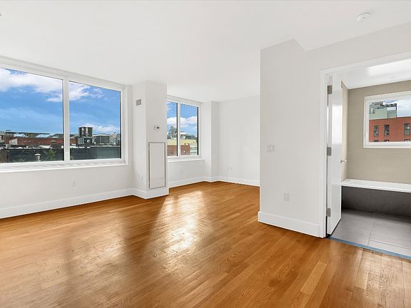 Nestled within the charming neighborhood of Park Slope, Brooklyn, The full serviced Instrata Park Slope stands as a testament to sophisticated urban living. With 95 meticulously crafted residences comprised of studio, 1-bedroom, and 2-bedroom residences, each one thoughtfully designed to capture abundant natural light through expansive windows, the essence of luxury is woven into every corner. This sun filled layout has an option for a separate versatile bedroom area. You can immerse yourself in the vibrant pulse of Brooklyn, mere moments away from iconic attractions such as Prospect Park, the Brooklyn Museum, Brooklyn Botanic Garden and The Barclays Center. This area also lends itself to artisanal coffee shops, an organic market, weekend farmer's markets, and a rich tapestry of locally owned restaurants are all at your convenience. Oversized studio residence which features a corner residence with a separate bedroom nook, excellent closets, separate kitchen, in unit wash/dryer and beautiful natural light. Pictures are of a similar residence. At Instrata Park Slope, a world of opulent amenities awaits. The property offers a gym, a tenant lounge with TV, a kitchen, billiards table, a fireplace, and a dedicated bike room. Some additional amenities include private storage, a pampering pet spa, garden and on-site parking, all while having the presence of a doorman and live-in superintendent to ensure seamless living. The property also boasts two communal desks with the pinnacle being on the deck located on the roof which allows tenants to gaze upon 360-degree panoramas that unveil breathtaking views of Brooklyn and beyond. Bask in the luxury of private cabanas, sun loungers, and a peaceful garden fountain that adds to a relaxing atmosphere. Finally, a grill allows for alfresco culinary adventures! Each sun-soaked residence welcomes you with luxurious interiors, characterized by expansive open floor plans designed to nurture comfortable living and seamless dining experiences. Within the residences themselves you will find hardwood floors as well as stainless steel appliances and custom paneling gracing the sleek kitchens. Built-in heating and cooling units ensure year-round comfort, while the convenience of in-unit washer/dryers and dishwashers elevate your living experience. Prepare to immerse yourself in a world where comfort, sophistication combine seamlessly!