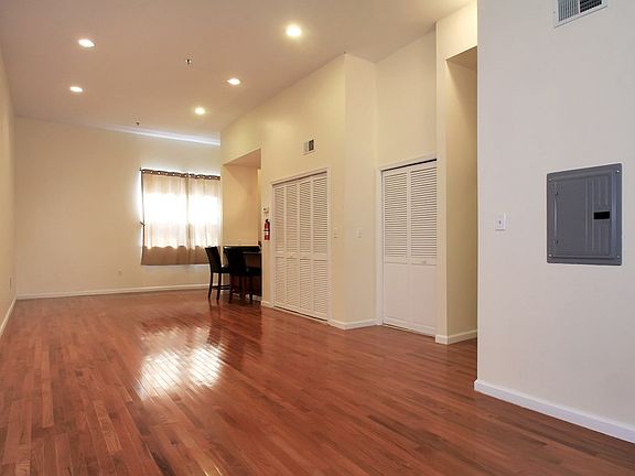 Great recently renovated 2 BR apt w/a 2 car tandem garage. This open concept 1st floor 2 BR apt has 12' ceilings, Central A/C, Hd/wd floors and is in a boutique building with 4 corner units. It has plenty of storage, a work space in the Kitchen with granite countertops, stainless steel appliances and breakfast bar w/seating. Enjoy the convenience of the full size in-unit stackable washer/dryer. Also there's a private storage area in the basement. This is the perfect location for commuters to NYC or other areas with quick access to buses on Blvd East & Park Ave, the ferries at Port Imperial and Rt's 1 & 9 & 495. Conveniently close to shopping & parks that offer city views. Pets ok on a case by case basis. A great apt for the price! Available ASAP!