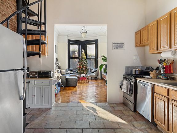 No Fee! This grand brownstone duplex is located in PRIME North Park Slope. Enter on the parlor floor to a huge dining room with a half bath off the dining room. There is a well designed kitchen equipped with a dishwasher between the dining room and living room. The elegant living room is stunning and has a decorative fireplace. There is a washer/dryer on this floor as well. Walk up the spiral staircase to the second floor to access the three bedrooms. This is a large bedroom in the back of the duplex with a full bath off of it. There is also a huge master bedroom in the front of the duplex with a smaller bedroom off of it. Ample closet space. Filled with beautiful brownstone details including decorative crown moldings, parquet floors, high ceilings, decorative fire places, and large windows. This duplex is filled with light! Sorry no dogs. Cat on approval. Available February 1. Heat/hot water included.