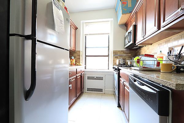 This stunning unit was recently renovated. Freshly painted unit with gorgeous wall indentations throughout the living room and foyer. The kitchen is eat-in galley style. The cherry wood cabinets accompanied by the quartz countertop creates chefs delight. The kitchen comes well equipped with stainless steel fridge, stove, microwave, and dishwasher. Their is room in this kitchen for table. The foyer space is large and ideal for a multi purpose space. Living room is large for entertaining guests. Good closet space throughout the unit. The bathroom has been tiled floor to ceiling with two windows. The bedroom can hold a king sized bed. The building is well kept with a new elevator. The unit is a short distance to shore road, express busses, shopping, and the 95th street train. The co-op board does not allow dogs for renters unfortunately.
