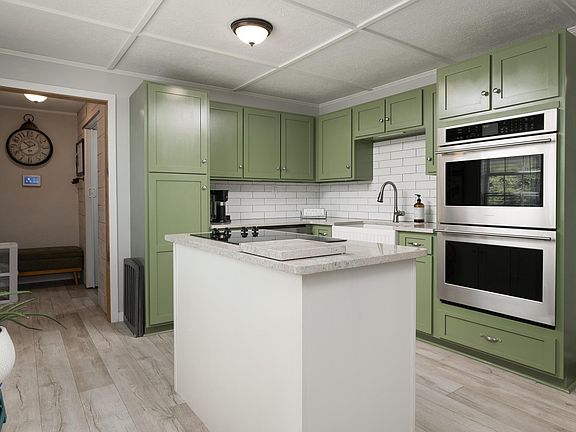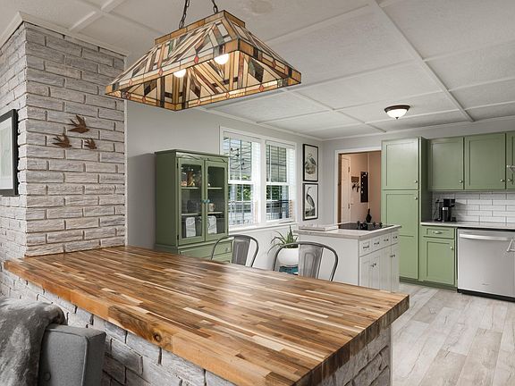 COMPLETELY REMODELED HOME W/ DOUBLE LOT...This remodeled single-level home offers quality updates throughout. The front porch has been completely redonw with new stairs and posts, improving curb appeal. Inside, you'll find custome cabinets, unique flooring, and modern tilework in the kitchen and bathrooms. The kitchen is the highlight, featuring a large cast iron sink, butcher-block and granite countertops, stainless steel appliances, and high-end finishes. Both the kitchen and bathrooms have water-resisitant subflooring for added durability. With 3-inch drywall and superior insulation, this home offers better privacy and improved energy efficiency, lowering utility costs and noise. Outside, a cedar wood bridge enhances the landscape, and a powered storage shed provides flexible use--currently a home hym and workshop, but easily adaptable for extra storage. Solar panels are installe and ready for connection, offering even more potential for future savings. This home combines craftsmanship and smart design, all set for its next owner!