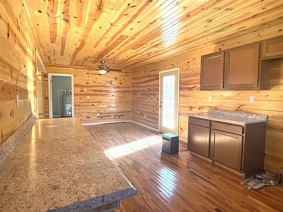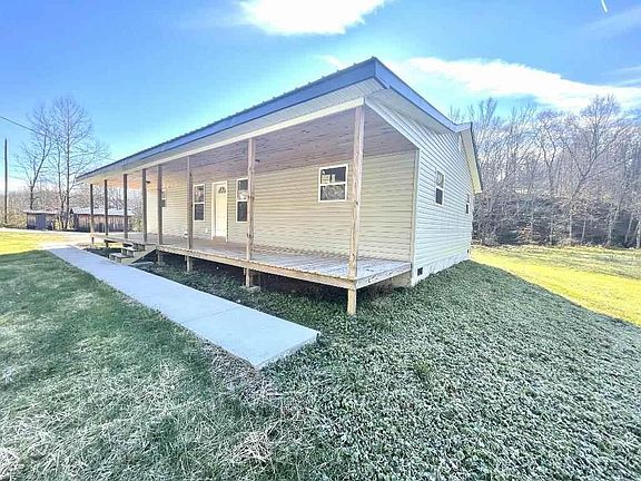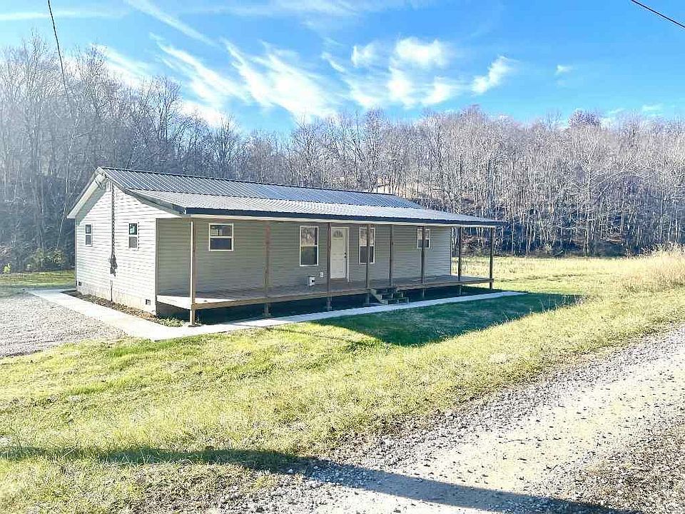 NEW construction 3 Bedroom 2 Bath Home with 22 Acres located only 2 miles from town, 3 ½ miles from Interstate I-64 and 12 miles from Carter Caves State Resort Park. This beautiful vinyl siding Ranch style home is completely brand new and offers hardwood flooring throughout, including gleaming wood walls and ceilings. Home has a nice size kitchen with plenty of cabinetry, dining room area, spacious living room with Master bedroom right off the living room, full bath and a spacious laundry room that with added shelving there could be plenty of room for a pantry. The other side of the home offers 2 more bedrooms and a full bathroom. A large covered front porch carries the full length of the home and is waiting for you to bring your rocking chairs and enjoy. There is a wooden back porch that overlooks the huge backyard, and you can hear the babbling creek nearby. Plenty of room for a massive garden, and letââ¬â¢s not forget the abundance of deer and wild turkey that roam the property. Property also has a small barn and Seller says he get approximately 100 Rolls of hay off the hay fields when 2 does two cuttings per year. Home has cistern water, but the seller has already paid the water tap and is waiting for Rattlesnake Ridge water company to install public water on Appaloosa lane. Also home does not have a HVAC unit but Seller is willing to have one installed for the buyer, time permitting, or he is willing to give the buyer $7,000 check at closing for buyer to install their choice of a heat source.