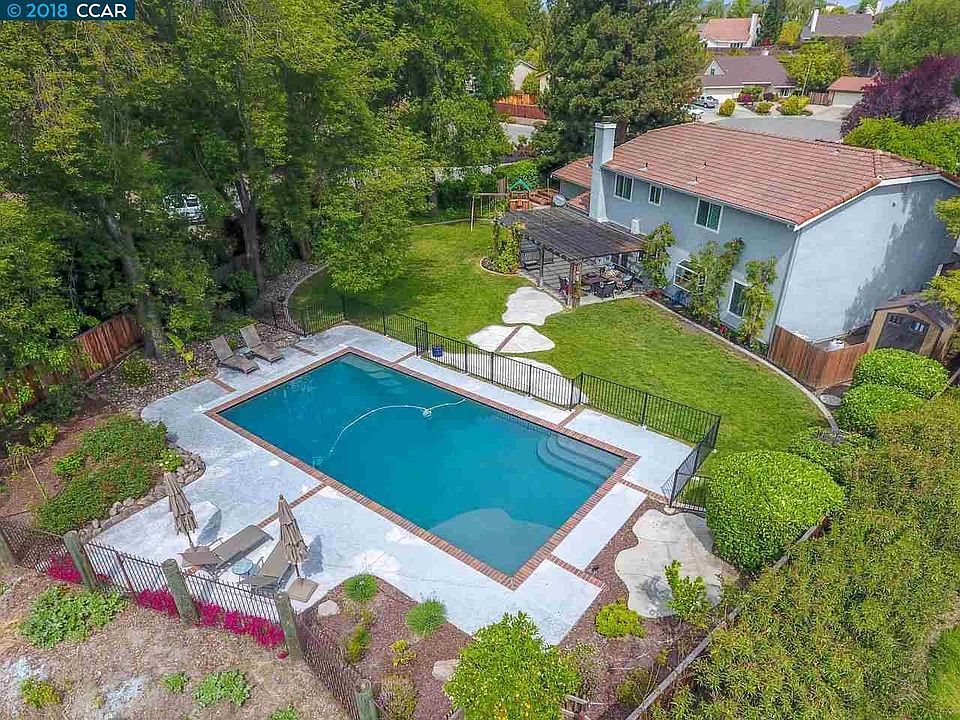 Stunning home on quiet street with picturesque yard overlooking the Bishop Ranch Regional Preserve. Completely updated home features 4 spacious bedrooms with an option for a 5th, 3 full bathrooms and a 3 car garage. The upgrades include a beautiful kitchen with center-island, cherry wood cabinets and granite countertops. The redesigned master suite offers 2 walk-in closets, private office and stunning bathroom. The remaining bathrooms have been remodeled with rich tile flooring, showers & enclosures with vanities offering granite countertops and newer fixtures. Other upgrades include newer heating & A/C, dual pane windows, plantation shutters, six panel doors, French doors and rich flooring throughout. The backyard offers privacy and views with exquisite pool for your family entertaining.