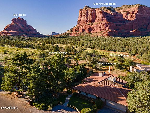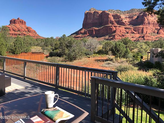 STUNNING RED ROCK VIEWS! THESE VIEWS WILL LEAVE YOUR INNER VOICE SPEECHLESS!! Red rocks in your back yard! See the National Forest & watch wildlife!! This home is so much more than you see from the road. You must see to believe. The wrap-around deck offers red rock views and multiple sitting/dining areas. Picture yourself sitting on the huge deck to have your morning coffee, happy hour, or meditate while enjoying the views. Plenty of room for entertaining. One-of-a-kind property! The home features main level living. There is 2709 sq ft of living space, plus a large laundry room on the main living level and a large workshop on the lower level. This home is beautifully maintained and updated. Living room features open living with fireplace and outstanding red rock views. The large kitchen has almost all new appliances, granite counter tops, plenty of cabinets and bistro table with wine rack. There is easy access from the garage to the kitchen. The new laundry room is on the main level in a room with it's own character. Decorate to your heart's desire. The primary bedroom has 2 closets and an updated bathroom with spa tub. The lower level features a large area with pellet stove that could be a family/game room with 2 sets of french doors that walk out to the lower level patios with still more red rock views and offers indoor/outdoor living. Also on this level there is a bedroom, a newly remodeled full bathroom, a media/office/exercise room, and another room with counters and cabinets that could be a kitchen. The lower level could be the perfect mother-in-law/kids area with parking right outside the door. This property is the perfect Sedona getaway or make it your permanent home. There is plenty of room in the grass area for corn hole, horse shoes and other games, and several locations where you could add a hot tub . . . and yes, with stunning RED ROCK views!!!