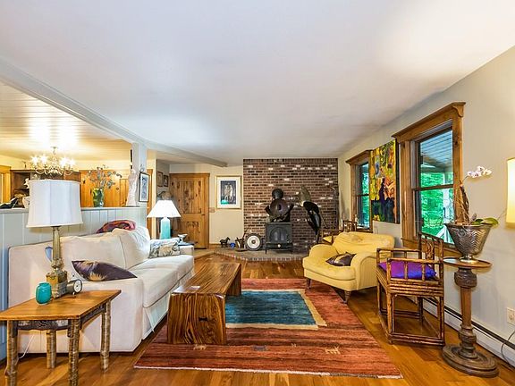 Utterly beautiful ranch-style home. Completely turn-key with lots of updates; private lot on almost 3 acres. Quiet location on a knoll above the low-volume country road, but only 15 minutes to Northampton and I-91. This custom-built home has many handmade features, cherry floors and solid custom interior doors you'll love. New granite countertops and bath upgrades. First floor laundry off the dining room, sliders to a beautiful Trex deck. Large attached 2-car garage with mud room. Great finished room in basement with knotty pine walls. Wood stove in living room and a 2nd in the basement. Lots of firewood will stay with the house. In this house you will always be cool, no matter the heat outside. The whole house fan works so well you have no need for air conditioning. Chapel Falls trail system nearby. Enjoy nature from your deck overlooking the beautiful Conway woods. 3 year old roof w 30 year architectural shingles. Custom storage shed, open front farm-style porch and much more.