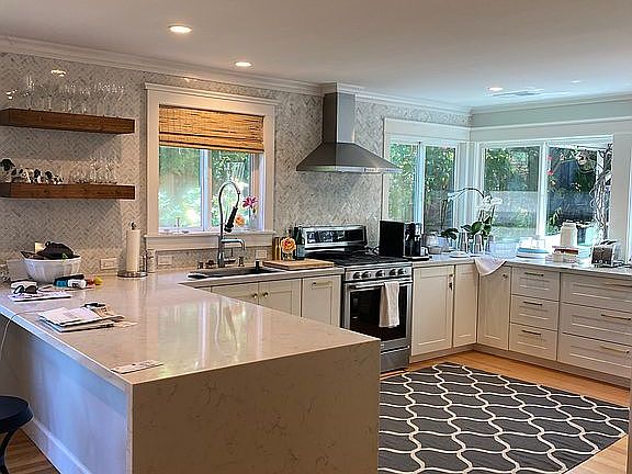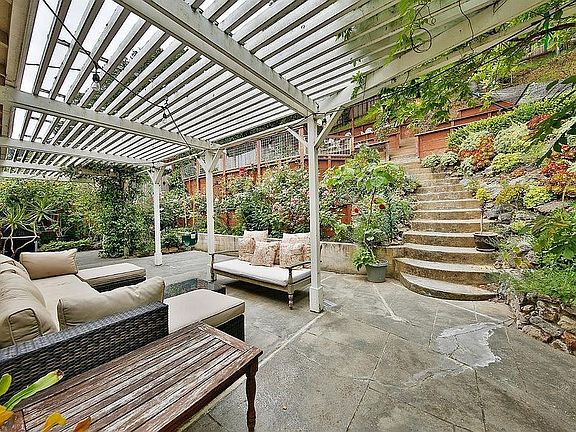 Completely remodeled 5br/2ba home situated at the end of a secluded street with brand new designer kitchen, downstairs wetbar, double laundry rooms, and a blooming, idyllic garden. Main level includes mud room, large formal living room & dining room, 3br/1ba, & eat-in kitchen with quartz counters, high end stainless appliances, and laundry adjacent to kitchen. Great indoor/outdoor access from the kitchen to the outdoor patio with pergola, mature roses, fruit trees, and tons of space to entertain in the terraced back patio. Lower level incl. 1 bath, completely remodeled wet bar / kitchenette, laundry room, and 2 more bedrooms. Unit has separate entrance and can be used as an ADU or in law unit. Also downstairs is the attached Garage, which has been converted to a top-of-the line home gym.