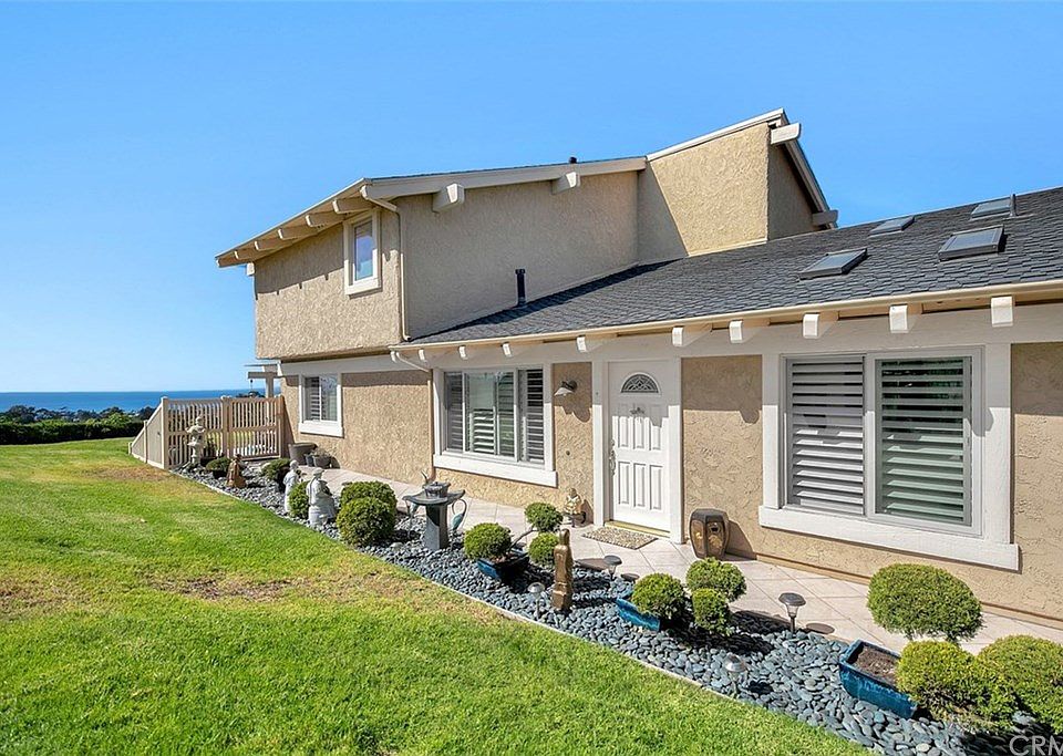 The Presidential Heights 1 floor plan everyone has been waiting for. 3 bedrooms with a main floor master. Not only that but live right above the golf course with straight on ocean views. Catalina Island and San Clemente Island views. Totally remodeled with a fireplace in living room and a walk-in spa tub in upstairs bathroom. Two car attached garage with direct access to kitchen. Vaulted ceilings and skylights in kitchen and dining room. Kitchen has granite counter tops and new slow closing drawers and cabinets. New custom lighting. New double pane windows with shutter window coverings. All bedrooms have beautiful ocean views and golf course views. End unit with ocean view patio that sits above the 15 hole on the San Clemente Muni golf course. Over 1500 sq. ft of extended living space. Beautiful wood floors on lower level. Custom bedroom closet doors. The owners invested $120,000 while doing all the upgrades since purchasing the home 10 yrs. ago. See supplement that's attached.