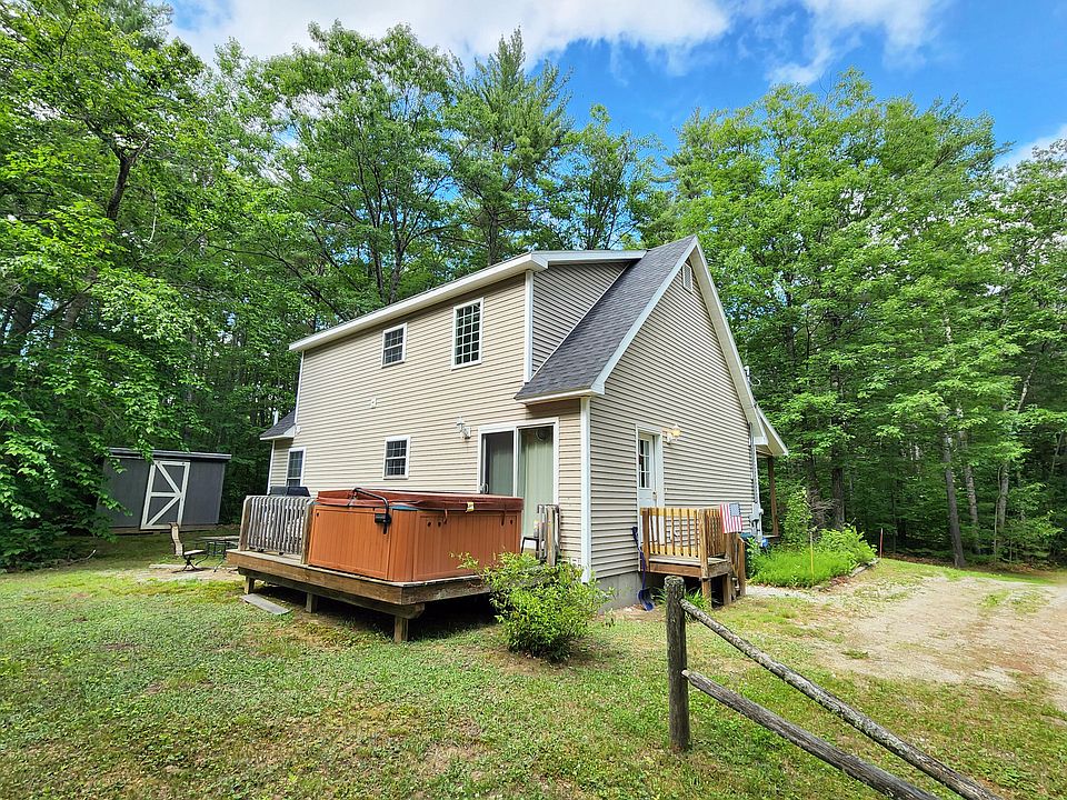 Close on this true turnkey investment opportunity just in time for ski season! This bright and open Cape style 4-bedroom home with 2 full baths is fully furnished with a strong year-round rental history and mixed owner use. The home has been rented nightly and monthly during the off-season and both short-term and as a seasonal rental during ski season, offering the versatility needed to make your dream of ownership in the Sunday River area a reality! The location and amenities also make this an ideal option for primary residency. Highlights include: Perfectly located just 1.3 miles to Bethel Village & Gould Academy, 7.2 miles to Sunday River, and 7.8 miles to Mt. Abram Ski Area & Bike Park. Situated on approximately 1 acre, the property boasts level, landscaped terrain with both open and wooded areas - providing both privacy and curb appeal. Spacious kitchen that seamlessly flows into the dining area, perfect for gatherings and daily living. Deck off the kitchen with hot tub so you can unwind - perfect for quiet evenings or relaxing after a day of exploring. Living room with vaulted ceiling & skylights that flood the living room with natural light, creating an airy and welcoming atmosphere. Full basement for storage or expansion and a shed for outdoor gear.