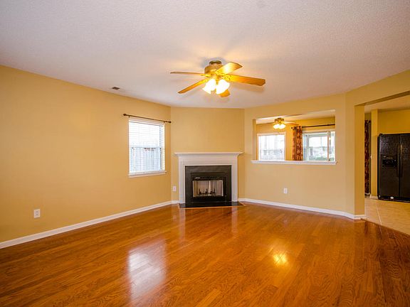 Welcome home! When you enter your new home you are greeted at the entry with beautiful hardwood floors that flow into the main living area! Main living area as mentioned has hardwood floors, wood burning fire place with mantle, ceiling fan and it opens to the large eat in kitchen. The kitchen comes equipped with tiled floor, window over the sink, beautiful granite countertops with island giving it ample counter top space, black Whirlpool range, built in microwave, and dish washer and beautiful backsplash. There is a full bathroom on the first floor right next to the first floor bedroom. Wood stairs take up to the second floor and you are greeted once again with hardwood floors in the upstairs landing. Bedroom 1 on the front of the home is spacious with ceiling fan and ample closet