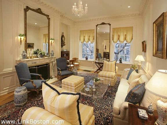 Magnificent parlor triplex located in former Governors Mansion on waterside Beacon. Phenomenal and spectacular does not accurately describe this incredible space. Rich in original architectural detail, fireplaced living with 14 foot ceiling height, separate dining room, best kitchen in Boston, private 960 sf deck & 2 garage pkg.