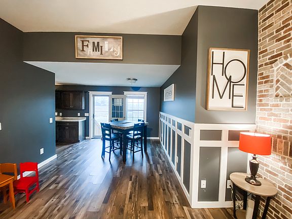 Five minutes from the interstate! This home has many upgrades including exposed brick in living room, soaring ceilings, extended back patio, concrete pad for trash cans in back, beautiful front steps, remodeled laundry room with concrete countertops, stainless kitchen appliances including refrigerator, shiplap, and a built-in bunk bed in third bedroom! Most trim has been upgraded, and most closets have been remodeled. Swing set is negotiable, and dining room table stays. You must see this open floor plan with storm doors! so much natural lighting!