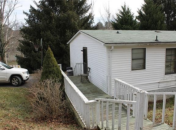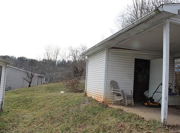 Manufacture home on corner lot. Private front porch with ramp entry. 3 bedroom split floor plan. Fireplace in living area. Dining room has built in cabinetry. Kitchen island cook space. Shed for additional storage. Sold AS IS. Conveniently located to downtown Canton and I-40.