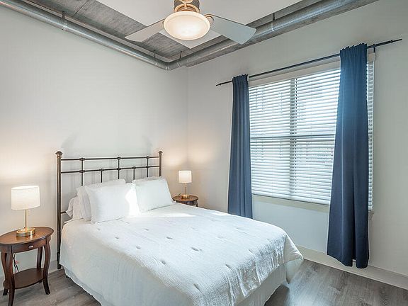 This gorgeous industrial style loft is on the third floor, includes contemporary finishes and opens directly onto the large courtyard offering incredible views of the Ashley river! This unit has been recently updated with a large tiled shower and includes a private, gated parking garage under the building with direct, covered access to the elevators. The kitchen features stainless steel appliances and a built in workspace. In the front of the building, there is a Club Lounge and a Fitness Room available to residents only. The Bee Street Lofts are adjacent to MUSC and the VA Medical Center making it an ideal location for a medical professional. Furniture negotiable!