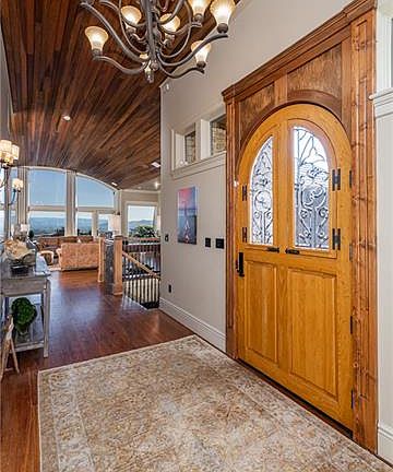 Luxurious mountaintop estate with stunning mountain views. Nestled on 2 homesites, this Energy Star rated home boasts the best in fit and finishes. A custom 4" front door, 6" solid pine floors, and barreled wood ceiling lead into a large living room with floor-to-ceiling windows and stacked stone fireplace. Chef's kitchen features 8-burner 5 Star range, granite countertops, walk-in pantry, and more. Relax by a wood-burning fireplace on the covered, back deck with rolling mountains in the background. The oversized master suite on main features a garden tub, walk-in tile shower, dual vanities, and custom cedar closet. A large office with built-in shelves completes the perfect main level. The lower level showcases a large rec room with wet bar, 3 beautifully appointed guest bedrooms, 3 full bathrooms, and a large patio. Additional features include an elevator, oversized 2-car garage, slate roof, IPE decking, and a flat, fenced backyard. All of this just 15 minutes from downtown.