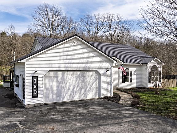 What a country charmer! If you are looking for an affordable country setting with public utilities this could be the one! 2-3 bedrooms, 2 full and 1 half bath. Large room sizes and attached 2-car garage. Huge eat-in kitchen with stainless steel appliances, island and access from the side covered deck. Living room measures 30x22 and boasts pocket doors, vaulted ceiling, crown molding and built-in bookshelves. Large formal dining room with wall of windows and views of the creek. Sunroom offers beautiful views as well along with an electric fireplace. You will never want to leave home here! This home offers a lot of living space and immediate occupancy.