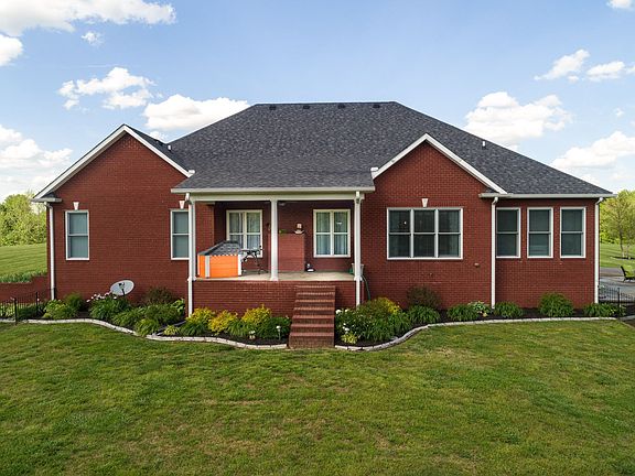 Elegant 3,400 sq ft custom built contemporary home on 27.91 manicured acres. Located on dead end road w/great privacy, Spacious LR w/trey ceilings, recessed lighting & fireplace. Kitchen w/custom cherry cabinets & granite counters. Huge master suite w/trey ceilings, separate tiled shower, jacuzzi tub, double vanities & granite counters. Full unfinished basement w/storm shelter, 60 x 28 tobacco barn, 40 x 60 hay barn & 30 x 40 detached workshop, geothermal HVAC, fenced & crossfenced. 2 ponds.